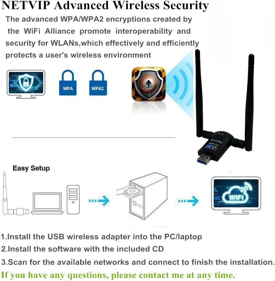 Netvip Wifi Dongle 1200mbps Dual Band Usb 3 0 Wifi Adapter Wireless Wifi Signal Extender Network Internet Adapter With 5dbi Antenna Support Windows 10 8 8 1 7 Vista Mac Os 5g 2 4g Computers Accessories Networking Devices