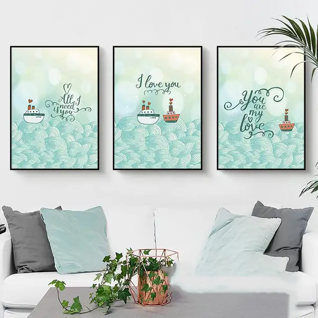 Nordic Simple Love Quotes Pictures Minimalist Art Print Boat Sea Big Waves Poster For Kids Canvas Wall Painting Baby Room Decor|Painting & Calligraphy| - AliExpress